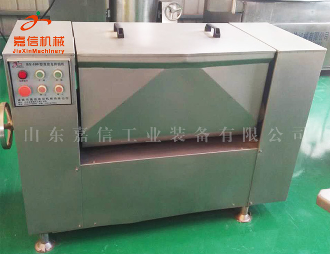 我公司生產(chǎn)的拌餡機(jī)是參照國(guó)際同類產(chǎn)品的特點(diǎn),同時(shí)結(jié)合我國(guó)肉制品加工工藝特點(diǎn),自行研制開(kāi)發(fā)的。該機(jī)可進(jìn)行餡狀、散狀、醬狀物料的攪拌混合。經(jīng)過(guò)攪拌的餡粘度增加,富有彈性,特制的扇形攪拌器,在攪拌的同時(shí)又對(duì)餡料起嫩化作用,與國(guó)內(nèi)同類產(chǎn)品相比較可顯著提高工作效率,是食品生產(chǎn)的一道重要工序。該機(jī)設(shè)有正逆運(yùn)轉(zhuǎn),可滿足不同攪拌工藝的要求。接觸食品及外觀部分均采用不銹鋼材料,符合食品衛(wèi)生要求。