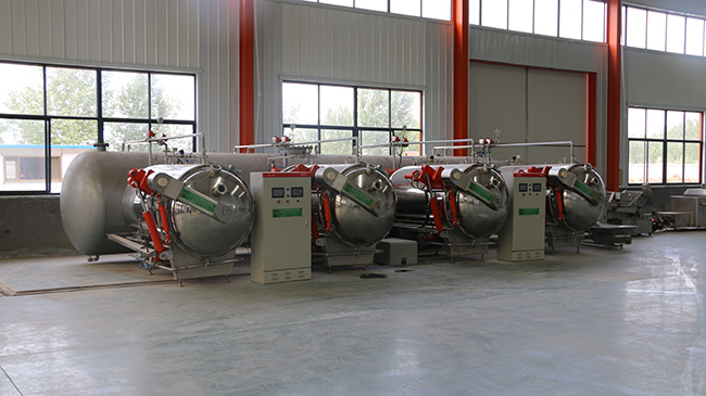 真空膨化系統(tǒng)主要是由壓力罐和一個(gè)體積比壓力罐大5-10倍的真空罐組成。果蔬原料經(jīng)預(yù)處理后,干燥至水分含量15%-25%(不同的果蔬要求的含水量不同)。然后將果蔬置于壓力罐內(nèi),通過加熱和加壓,使果蔬內(nèi)部水分突然汽化、閃蒸,是果蔬細(xì)胞膨脹達(dá)到膨化的目的。