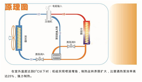 熱泵烘干機(jī)是一種新型節(jié)能烘干機(jī),其工作原理是根據(jù)逆卡諾循環(huán)原理,采用少量的電能,利用壓縮機(jī),將工質(zhì)經(jīng)過膨脹閥后在蒸發(fā)器內(nèi)蒸發(fā)為氣態(tài),并大量吸收空氣中的熱能,氣態(tài)的工質(zhì)被壓縮機(jī)壓縮成為高溫、高壓的氣體,然后進(jìn)入冷凝器放熱,把干燥介質(zhì)加熱,如此不斷循環(huán)加熱,可以把干燥介質(zhì)加熱至40℃~85℃。相對(duì)于電熱烘干機(jī)而言,節(jié)約了三分之二的電能。