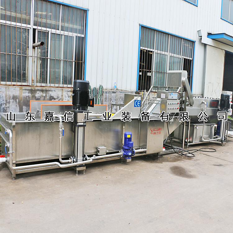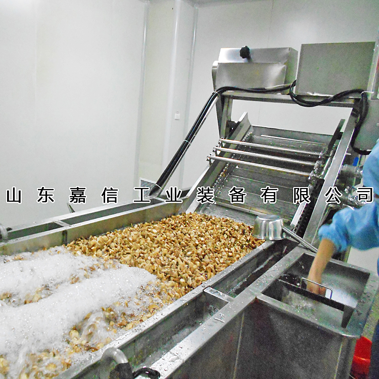 該機(jī)有氣泡發(fā)生裝置,物料呈翻滾狀態(tài),浸泡均勻。漂浮物可以從溢流槽溢出,沉淀物從排污口排出,,經(jīng)噴淋清洗后,提升輸送到下道工序,介質(zhì)水可過濾循環(huán)使用。清潔效率高,實(shí)用性強(qiáng),節(jié)水節(jié)能,是清洗加工的理想設(shè)備。該機(jī)分為清洗翻浪段、二次清水噴淋段。