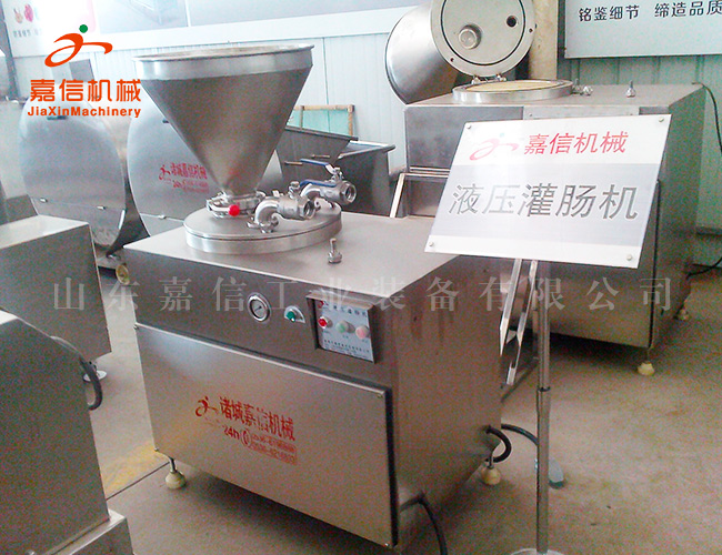 采用活塞式液壓驅動,調準工作壓力后在液壓缸的作用下,使筒內的物料產(chǎn)生壓力后將料擠出,適用物料范圍較廣,尤其對較干的料餡相對其他灌腸機效果更佳。設備整體結構合理、造形美觀、性能穩(wěn)定、操作簡單、維修方便。