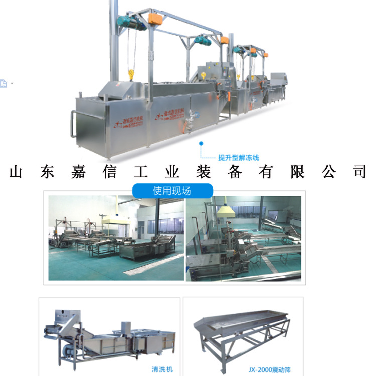 汆水鹵煮入味解凍流水線中的設(shè)備采用SUS304不銹鋼制作,溫度、速度可根據(jù)工藝要求設(shè)定,該機(jī)運(yùn)行平穩(wěn),不銹鋼網(wǎng)帶強(qiáng)度高,伸縮性小,不易變形,易保養(yǎng),減少了勞動(dòng)力。流水線中的各個(gè)單機(jī),可根據(jù)客戶產(chǎn)量及要求制作。