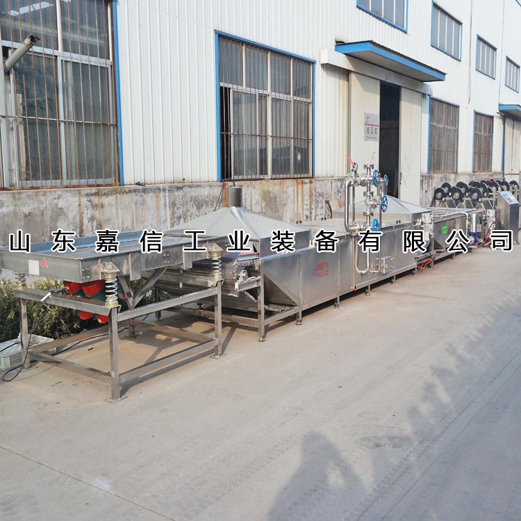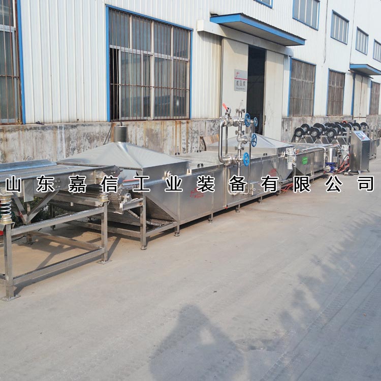 嘉信全自動(dòng)解凍機(jī)的工作原理為:將需解凍的魚(yú)盤(pán)放進(jìn)加滿水的解凍池,用高壓氣泡將水快速翻騰,讓解凍魚(yú)塊在解凍池內(nèi)相互輕微碰撞、摩擦,并由代替人工(模仿人手工)的刮撥器使解凍魚(yú)塊慢慢的向前移動(dòng)通過(guò)水低溫分解和氣泡翻滾,從而達(dá)到快速解凍的目的。解凍池旁邊有恒溫池(35℃恒溫水),水從恒溫池流入解凍機(jī)入料口處,隨著凍品的化冰解凍,網(wǎng)鏈上的產(chǎn)品向出料方向出料,解凍池內(nèi)的水溫保持恒溫狀態(tài),到出料這段時(shí)間,水再?gòu)慕鈨龀剡M(jìn)入到恒溫池,這樣循環(huán)利用。保持水資源的循環(huán)利用,提高水資料選用率。使用全自動(dòng)變頻型節(jié)水解凍機(jī)流水線設(shè)備既能降低成本,又能提高工作效率。