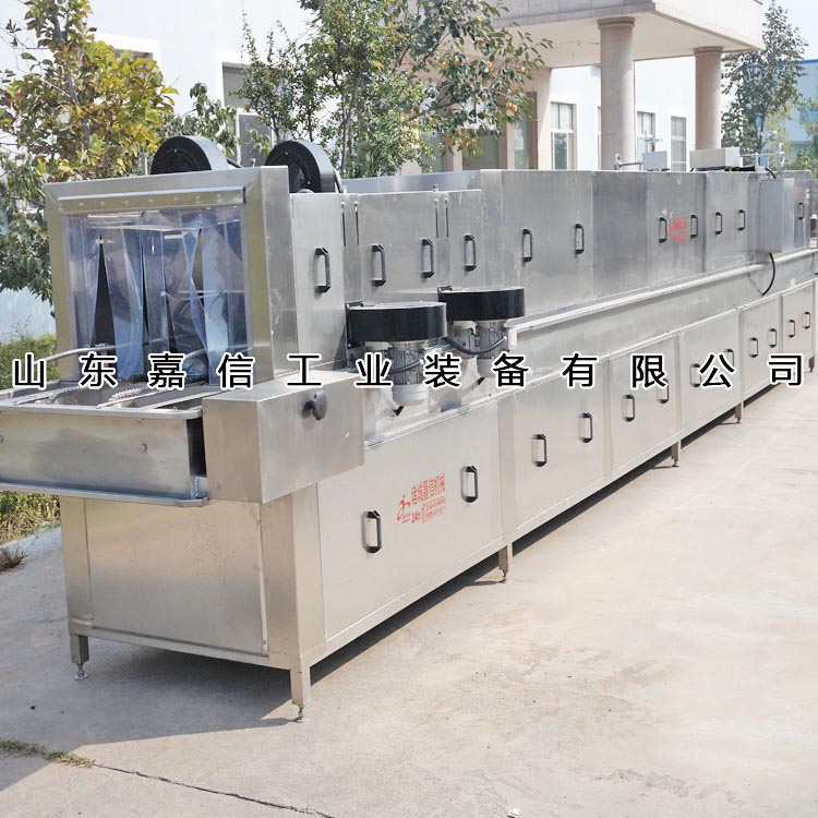本機開啟后,由人工送料到噴淋清洗機鏈條軌道或由輸送連接自動進料,先堿液噴淋,然后熱水噴淋,再進行清水循環(huán)噴淋,消毒水噴淋。四組各自獨立,外置循環(huán)水箱,過濾網(wǎng)可方便抽取。周轉(zhuǎn)箱沖洗進出口由人工操作。